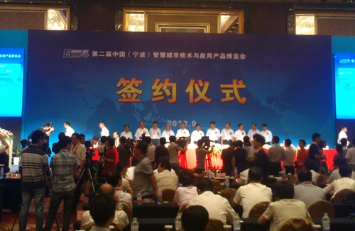 2012年9月7日上午,第二屆中國(寧波)智慧城市技術(shù)與應(yīng)用產(chǎn)品博覽會簽約儀式在寧波香格里拉大酒店舉行,共有物聯(lián)網(wǎng)、云計算、智慧交通、智慧教育等智慧城市建設(shè)相關(guān)領(lǐng)域的23個項(xiàng)目簽約。我區(qū)工業(yè)機(jī)械手生產(chǎn)項(xiàng)目、新型光電傳感器及配件生產(chǎn)項(xiàng)目在會上簽約。